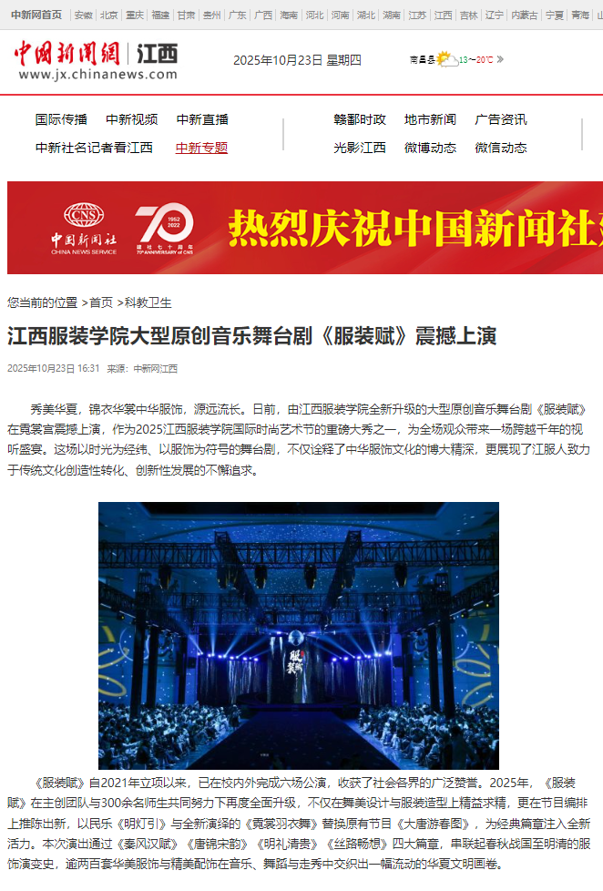 中国新闻网:江西服装学院大型原创音乐舞台剧《服装赋》震撼上演