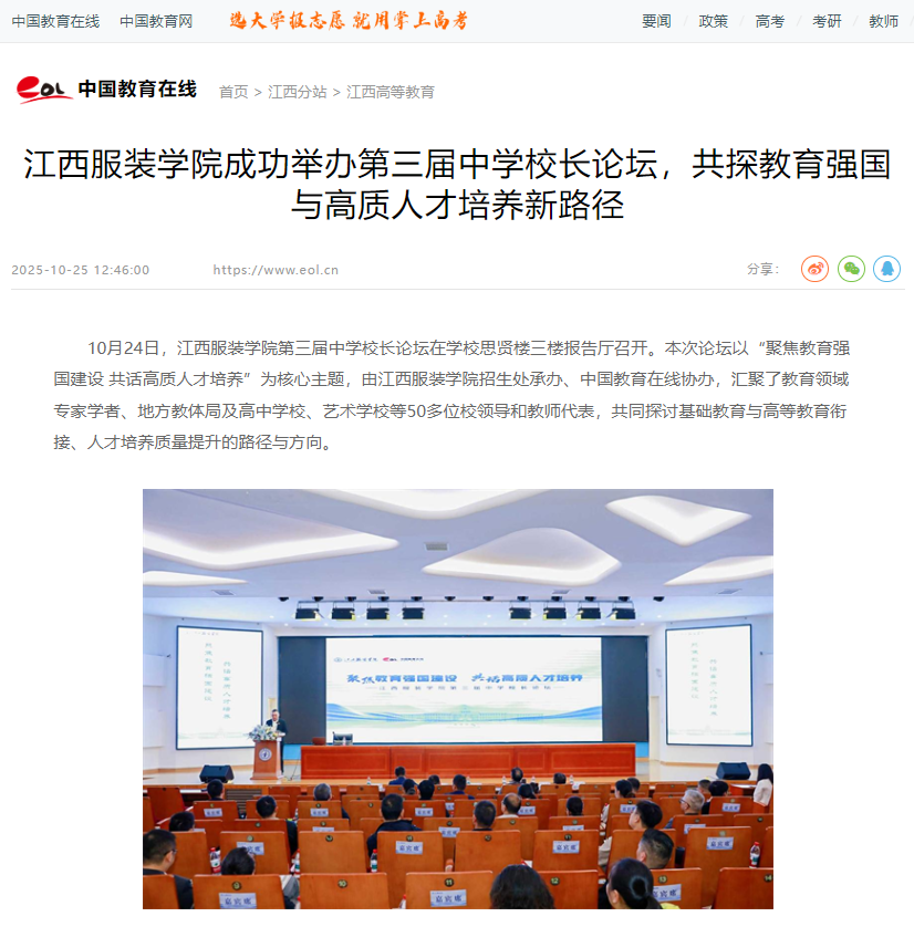 中国教育在线:江西服装学院成功举办第三届中学校长论坛,共探教育强国与高质人才培养新路径