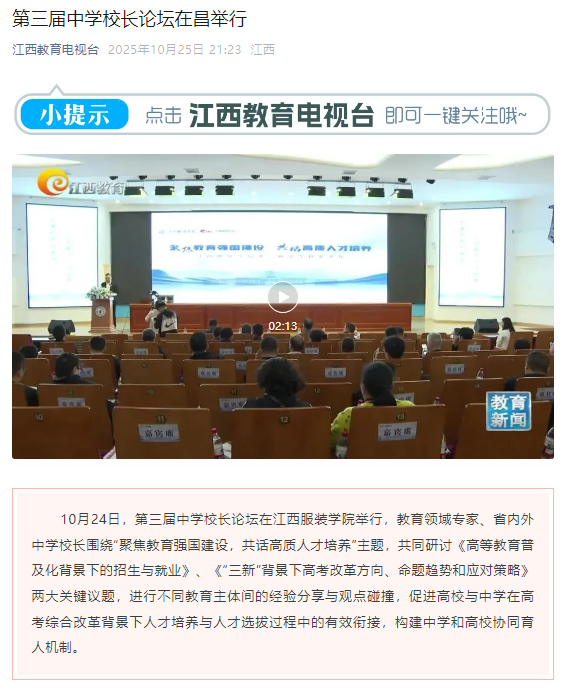 下一篇学习强国:江西服装学院成功举办第三届中学校长论坛,共探教育强国与高质人才培养新路径