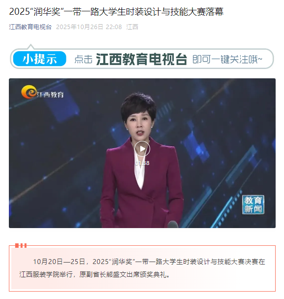 江西教育电视台:2025“润华奖”一带一路大学生时装设计与技能大赛落幕