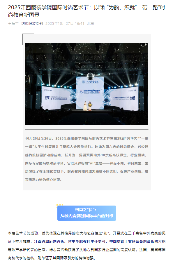 纺织服装周刊:2025江西服装学院国际时尚艺术节:以“和”为韵,织就“一带一路”时尚教育新图景