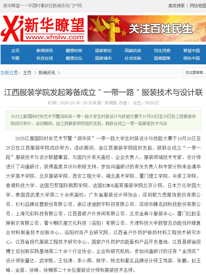 新华瞭望:江西服装学院发起筹备成立"一带一路"服装技术与设计联盟