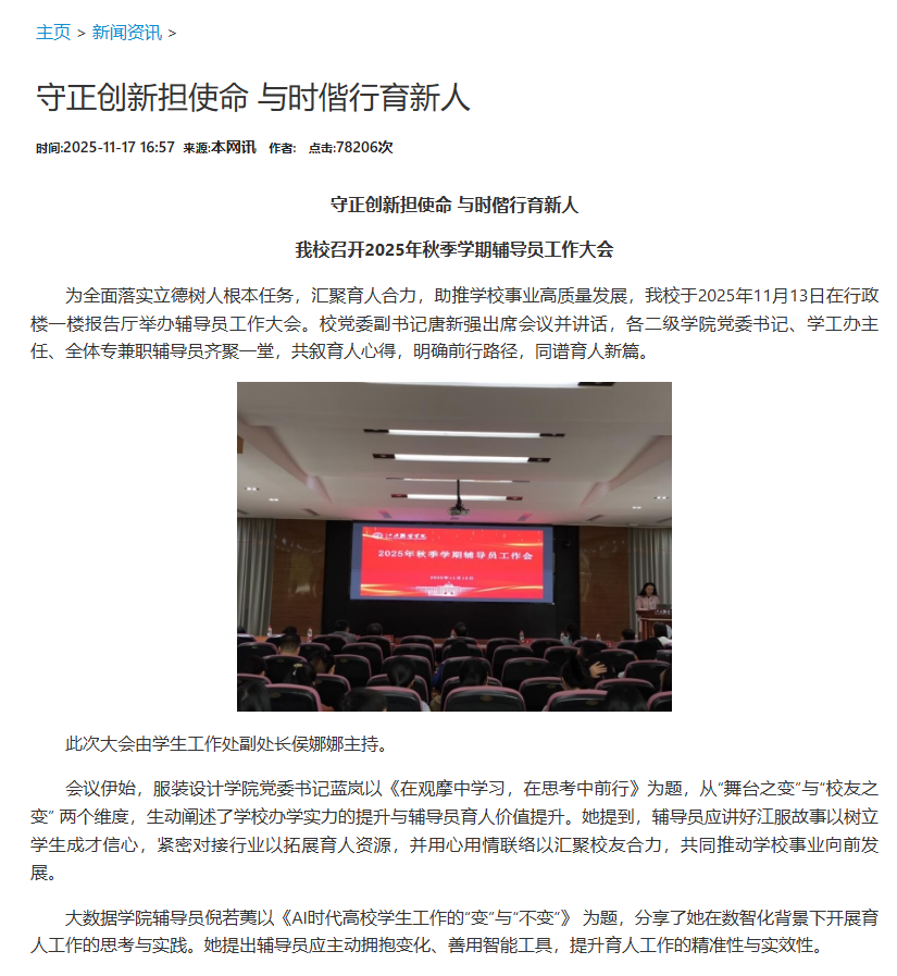 新华瞭望:守正创新担使命 与时偕行育新人 ——江西服装学院召开2025年秋季学期辅导员工作大会