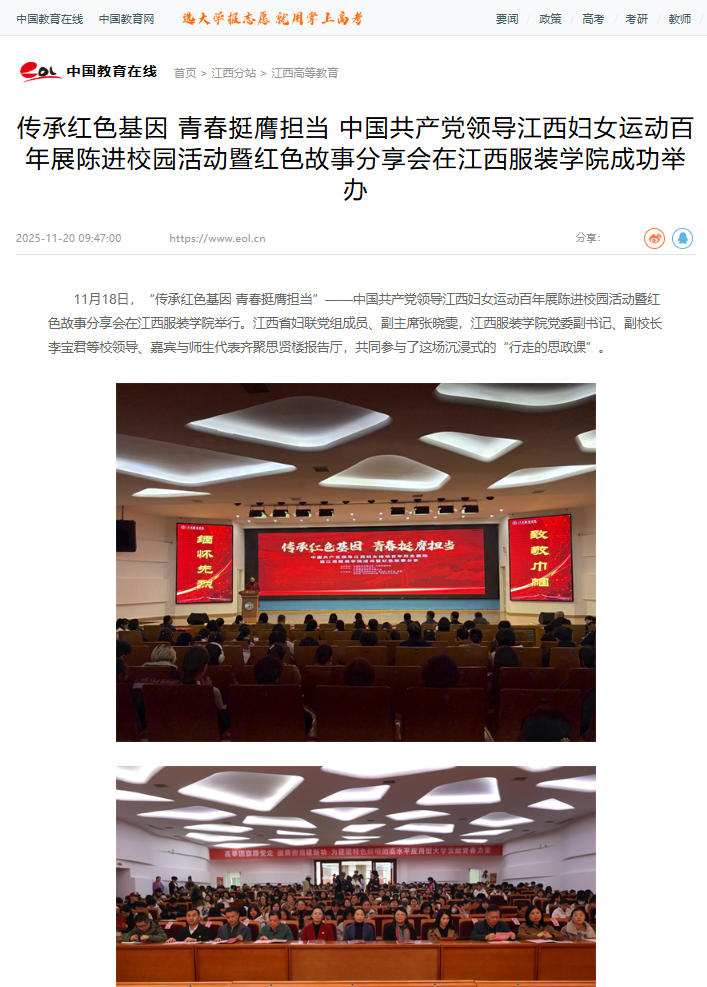 中国教育在线:传承红色基因 青春挺膺担当 中国共产党领导江西妇女运动百年展陈进校园活动暨红色故事分享会在江西服装学院成功举办