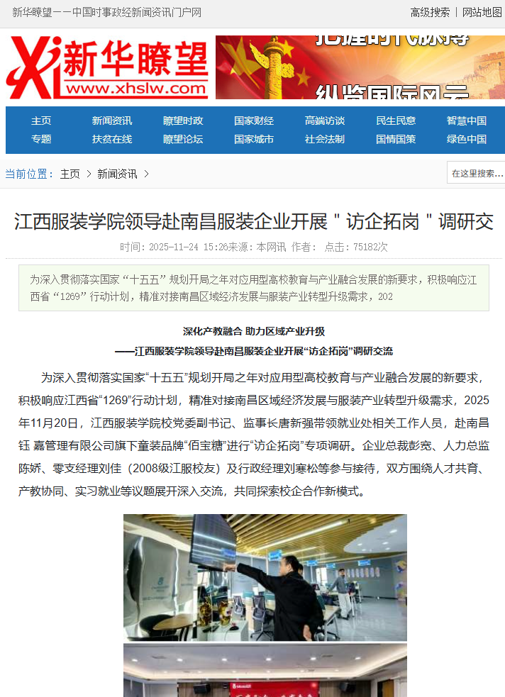 新华瞭望:深化产教融合 助力区域产业升级——江西服装学院领导赴南昌服装企业开展“访企拓岗”调研交流