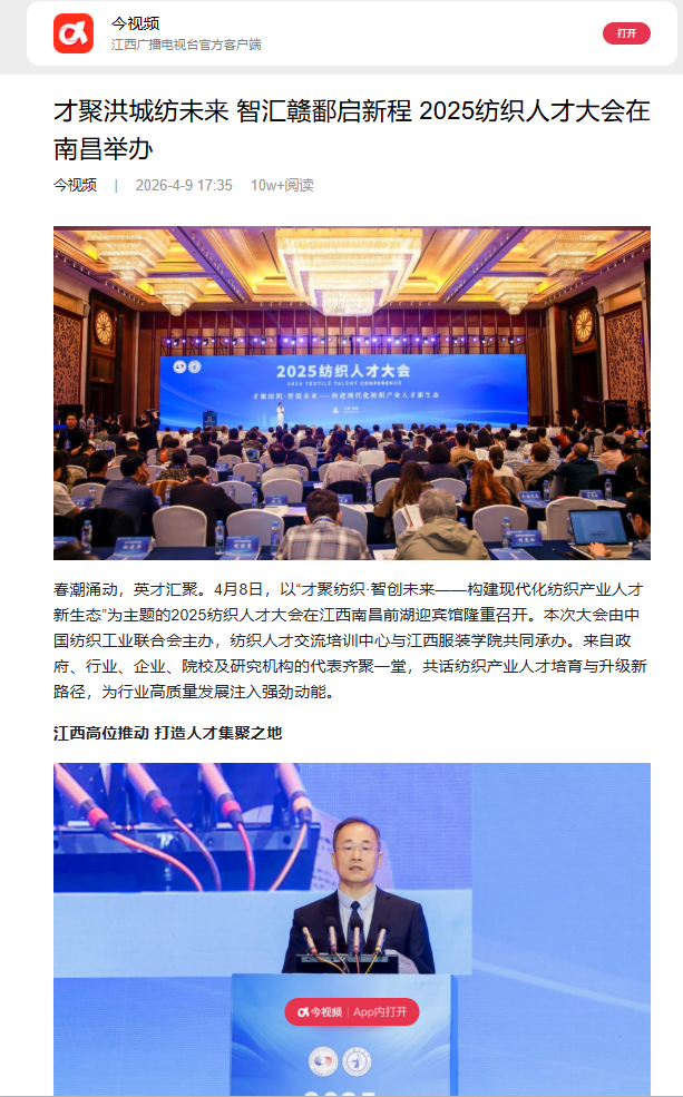 江西广播电视台·今视频:才聚洪城纺未来 智汇赣鄱启新程 2025纺织人才大会在南昌举办