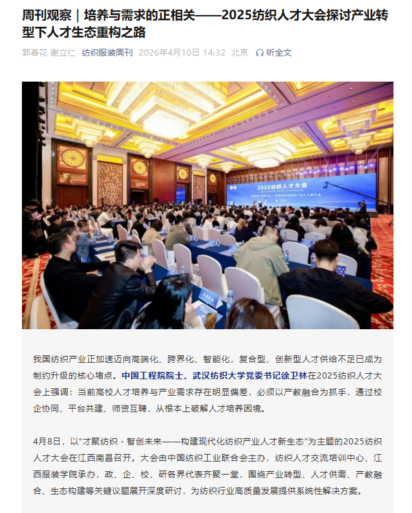 纺织服装周刊:周刊观察|培养与需求的正相关——2025纺织人才大会探讨产业转型下人才生态重构之路