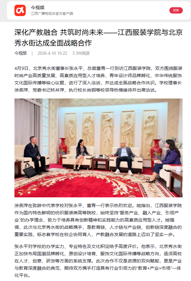 江西广播电视台·今视频:深化产教融合 共筑时尚未来——江西服装学院与北京秀水街达成全面战略合作