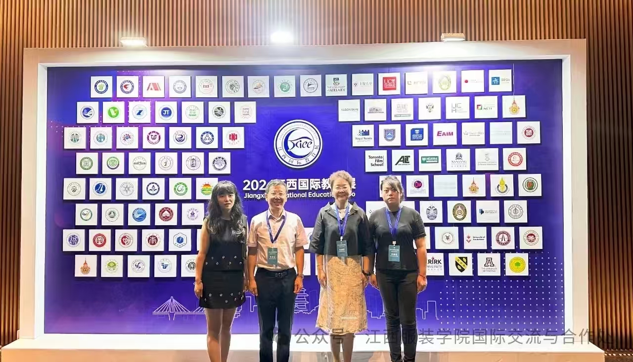 Jiangxi Institute of Clothing Vice President Jia Lixia attended the opening ceremony, accompanied by Liu Youfa, Director of International Exchange and Cooperation Office and staff of International Exchange and Cooperation Office. Our school as one of the exhibiting institutions in Jiangxi Province, carefully prepared a variety of exhibition boards and promotional materials. Vice President Jia Lixia and International Exchange and Cooperation Director Liu Youfa actively communicate with a number of colleges and universities from the United States, the United Kingdom, Australia, Canada, France and other 15 countries to introduce the history of Jiangxi Institute of Apparel, professional settings and achievements, and actively seek cooperation in all aspects of the possible.