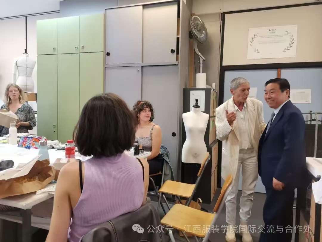 On 2 July, President Xue Jiabao led our academic exchange delegation to arrive at the International Institute of Tailoring Paris (AICP), where the President and Principal warmly received the members of our academic exchange delegation. Led by Principal Christine, the delegation visited the school's campus environment, teaching facilities and students' works.